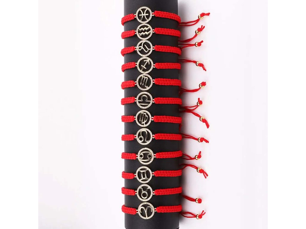 - Červený šňůrkový kabbalah náramek.