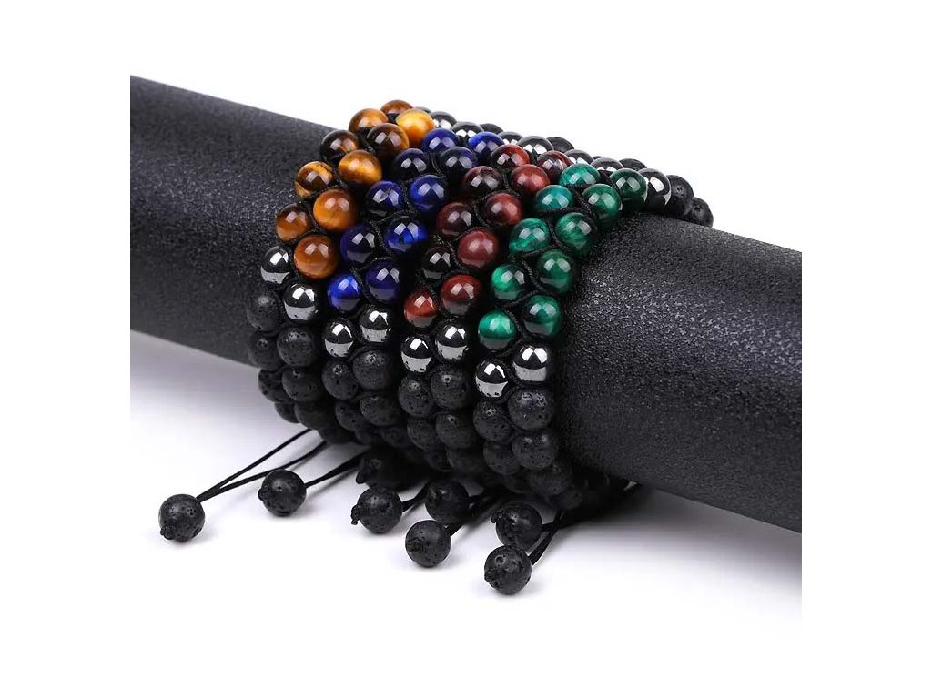 | Osazení: | Tygří oko, Lávový kámen, Hematit |