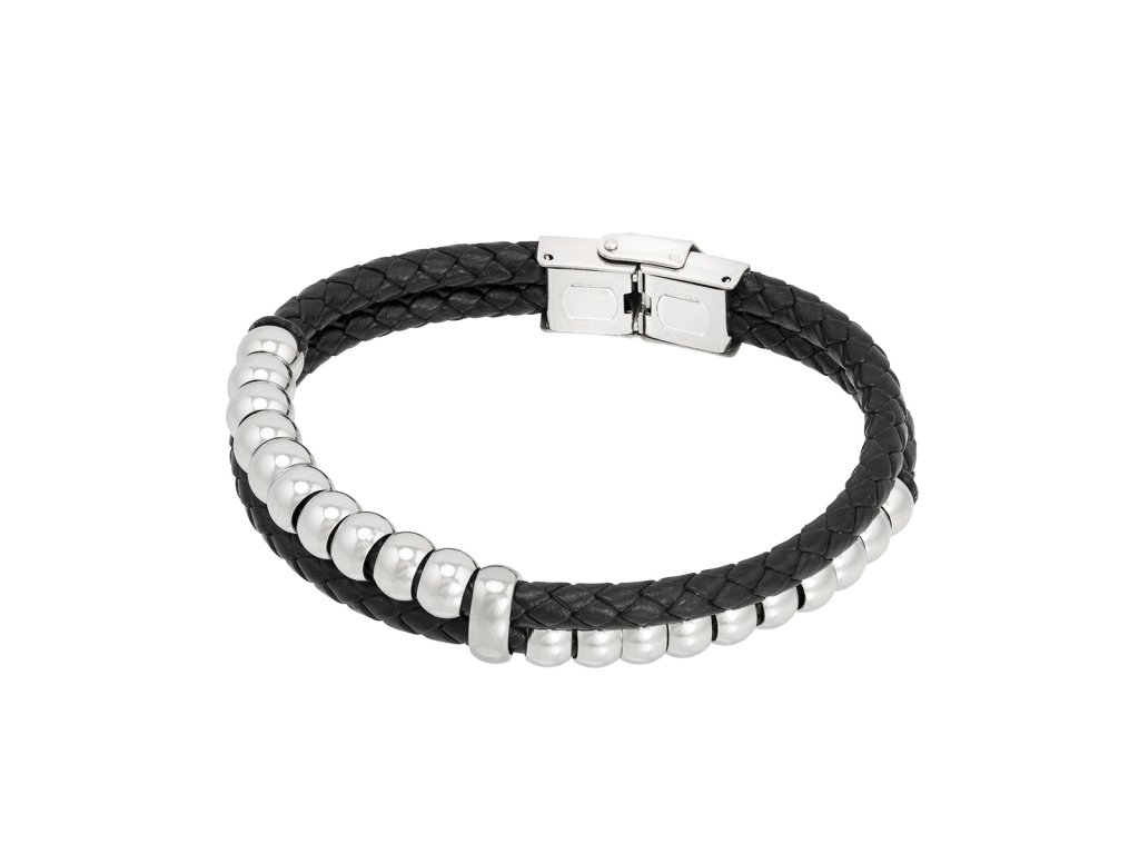 Kožený náramek Baller Black chirurgická ocel +Dárková krabička zdarma