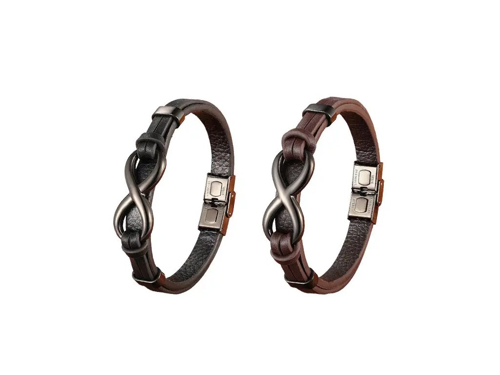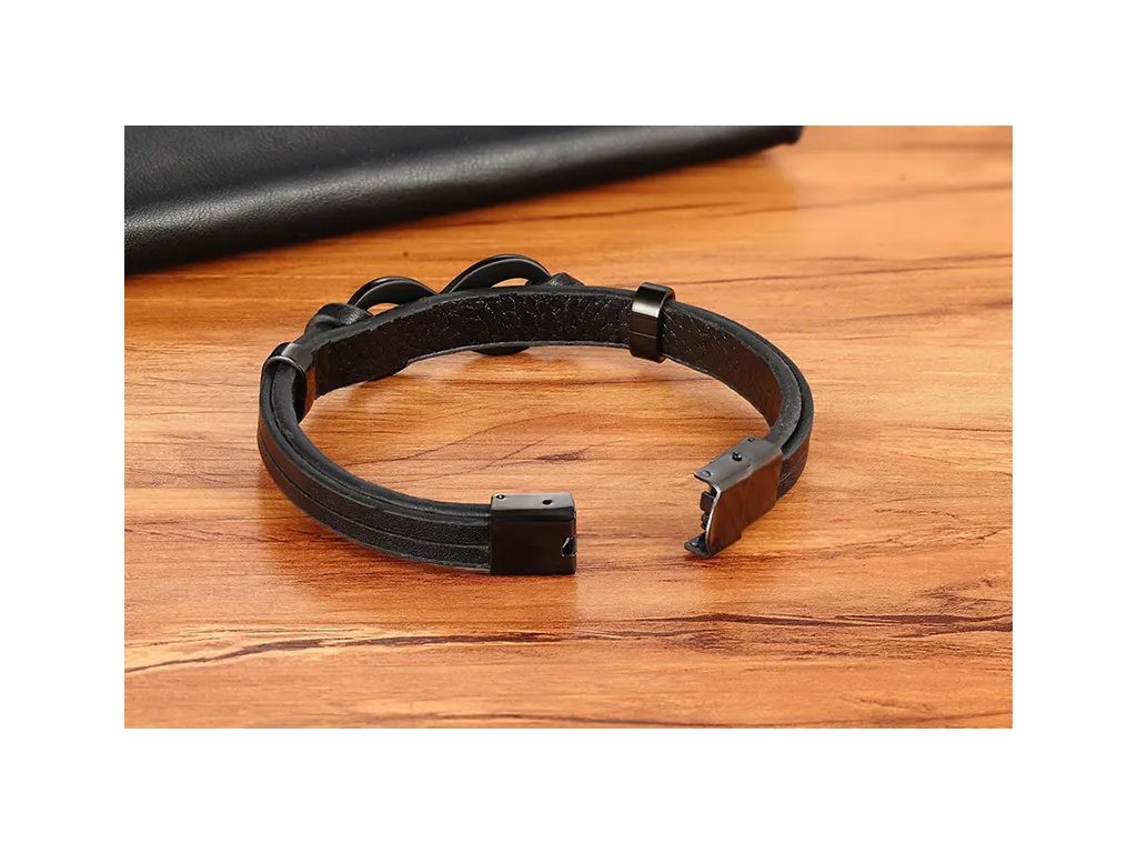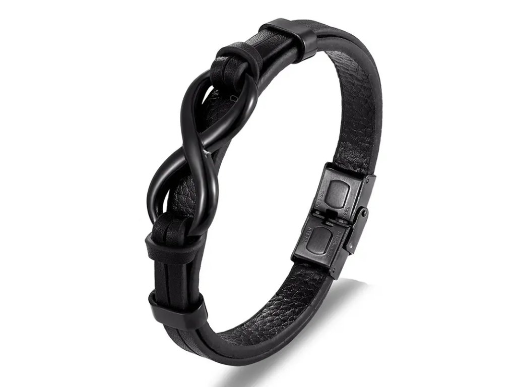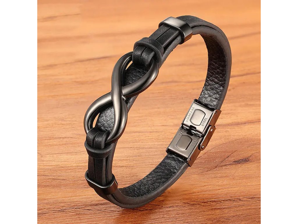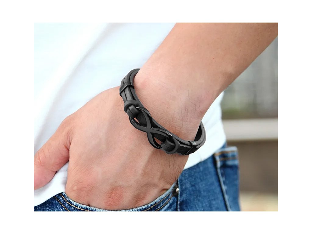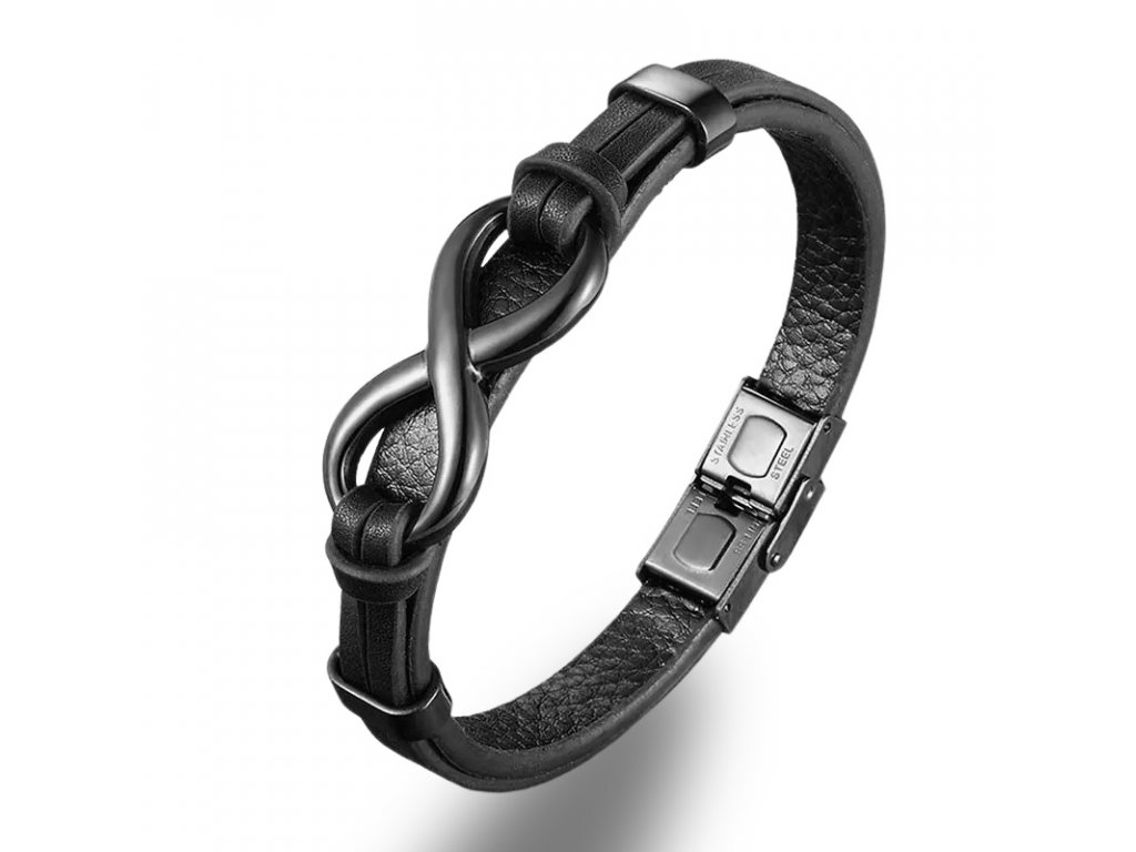 Kožený náramek Endless Black chirurgická ocel +Dárková krabička zdarma