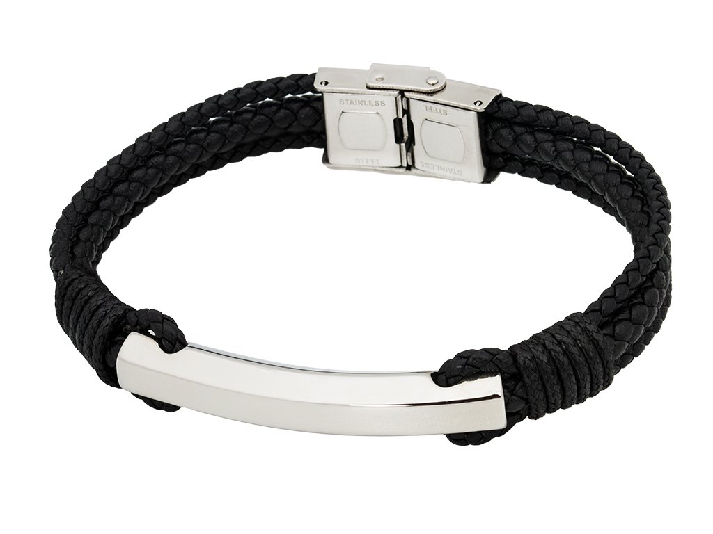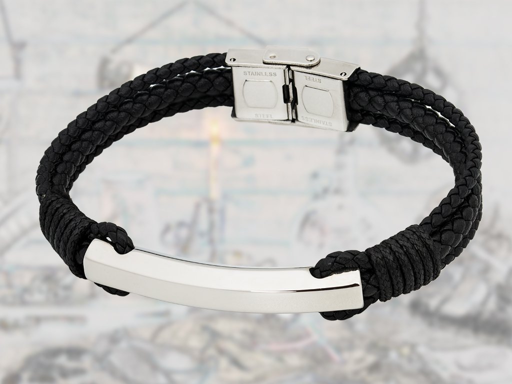 Kožený náramek Ocelový plát chirurgická ocel +Dárková krabička zdarma