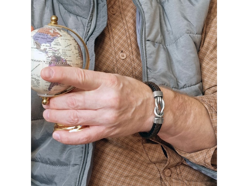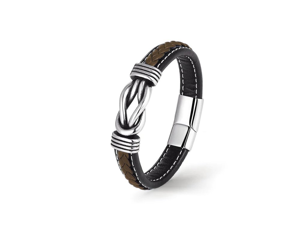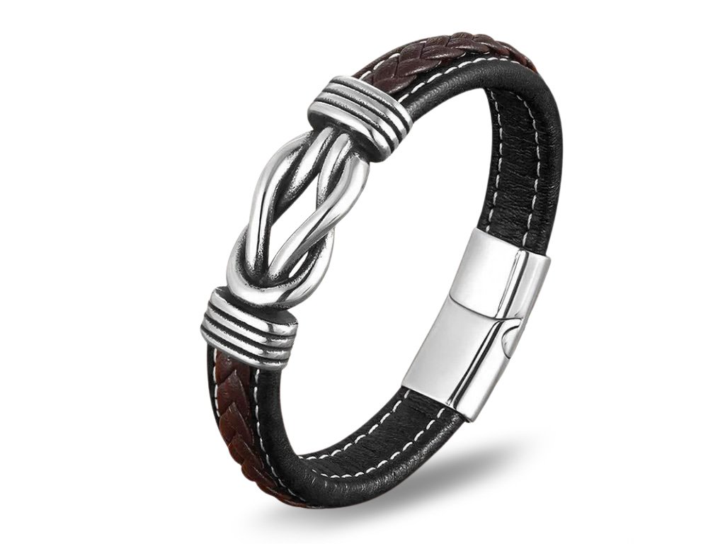 • Motiv uzlu stojí v popředí pánského koženého náramku.