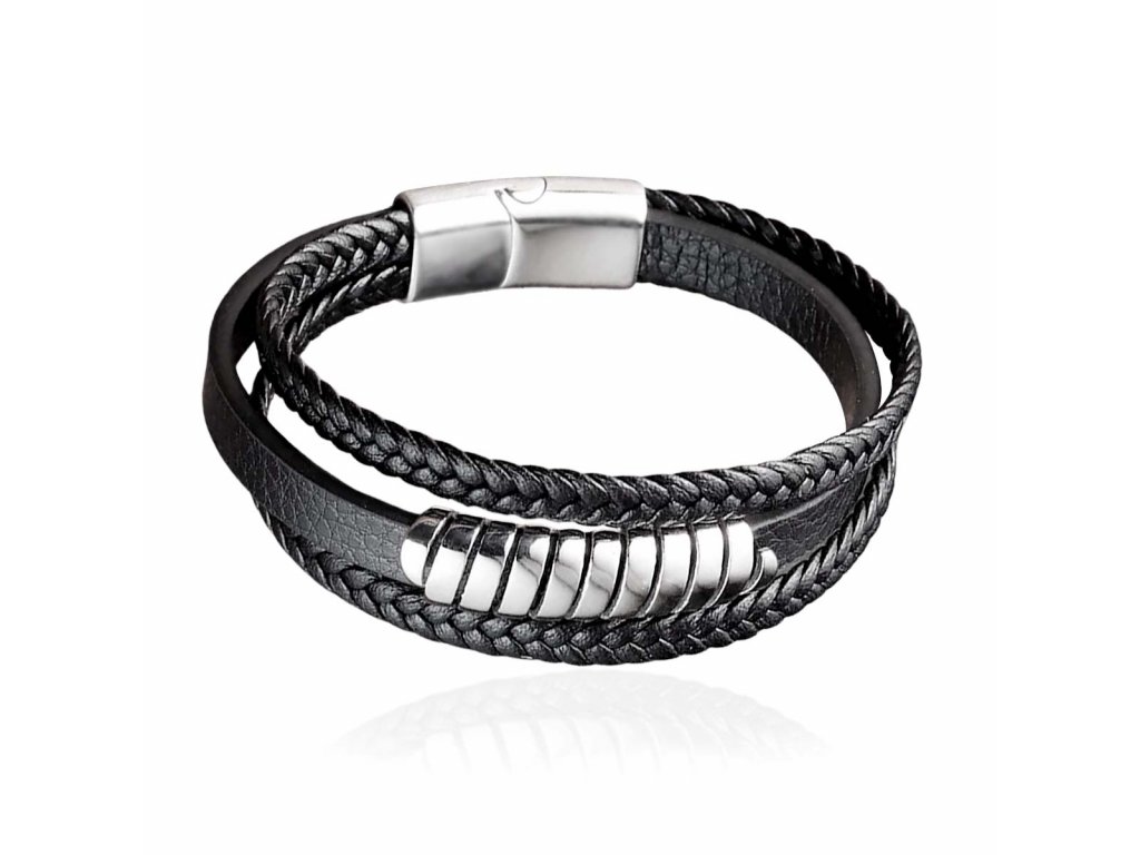 Kožený náramek Snakey Steel chirurgická ocel +Dárková krabička zdarma