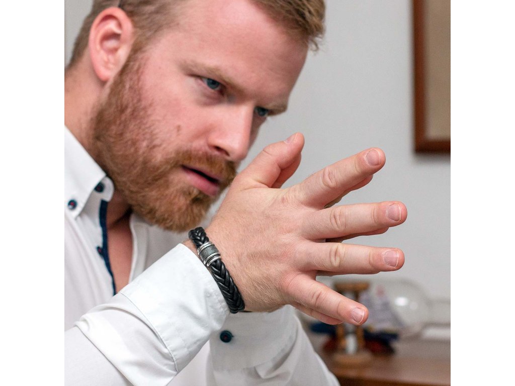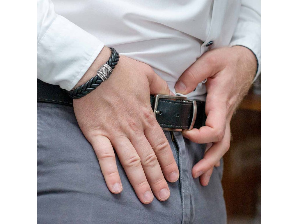 - Masivní a velmi pohodlný kožený náramek.
