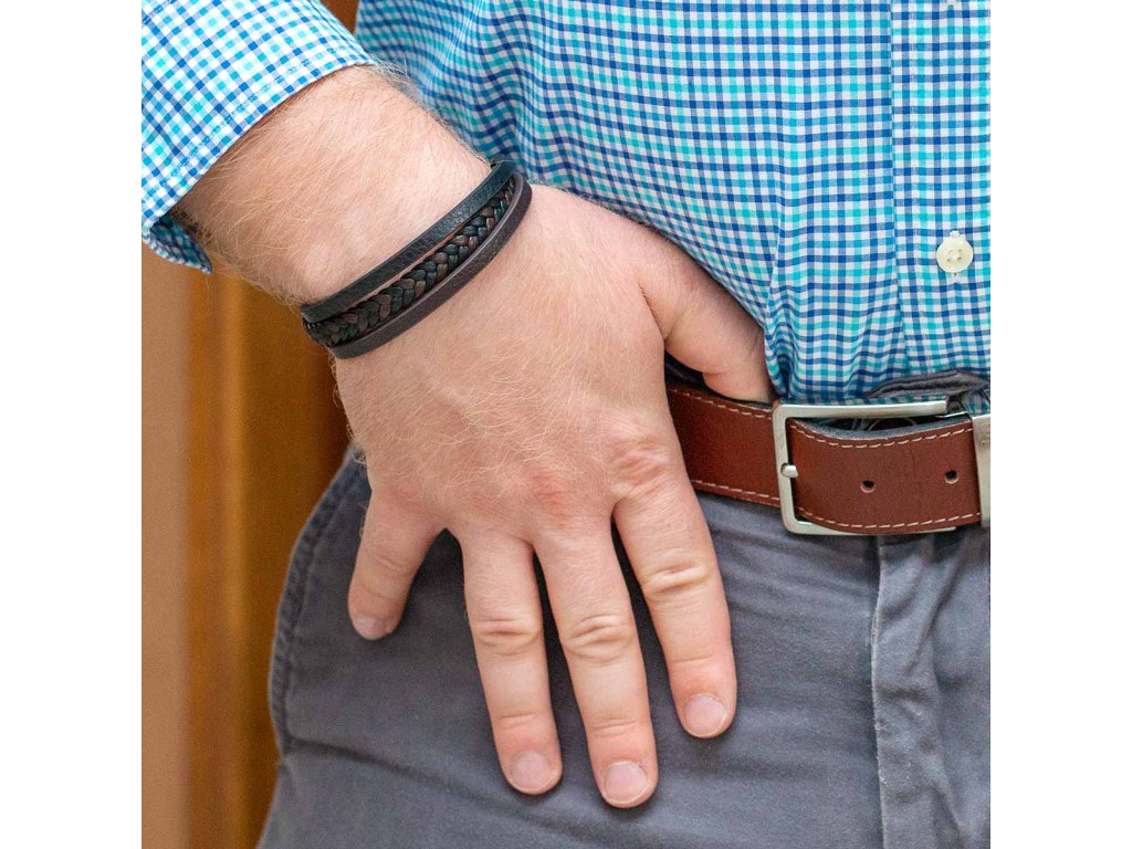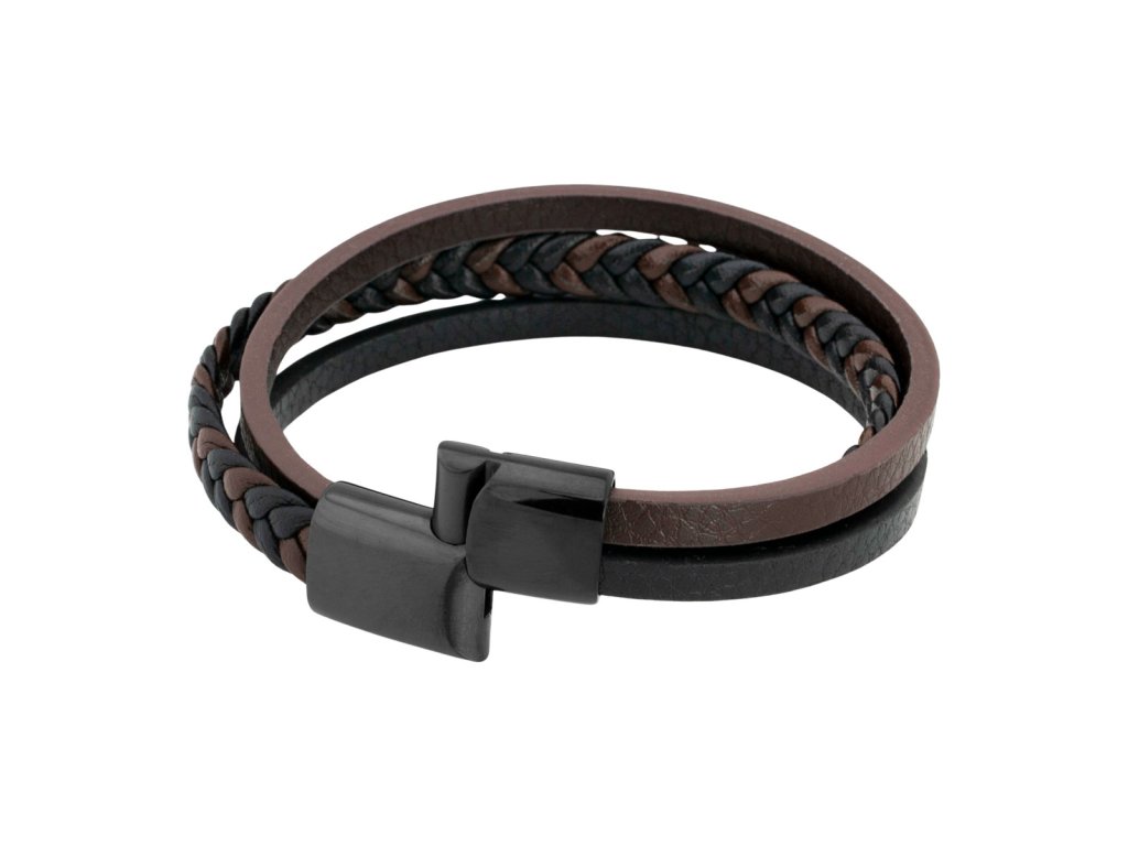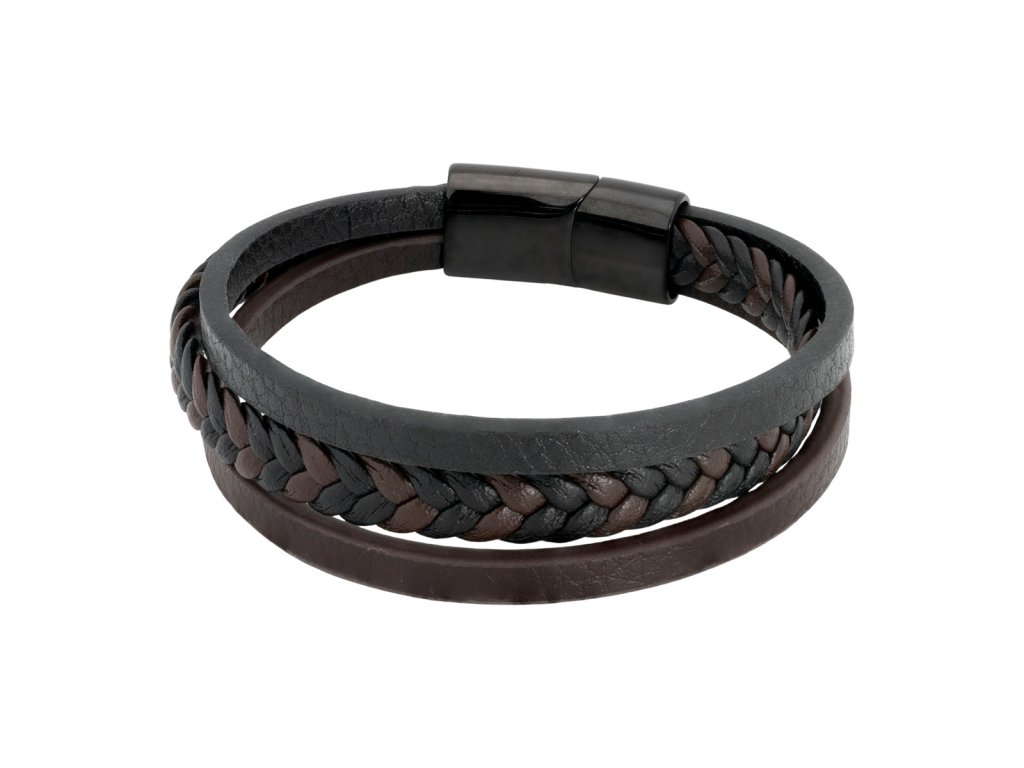Kožený náramek Triplex Black & Brown chirurgická ocel +Dárková krabička zdarma