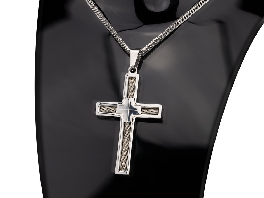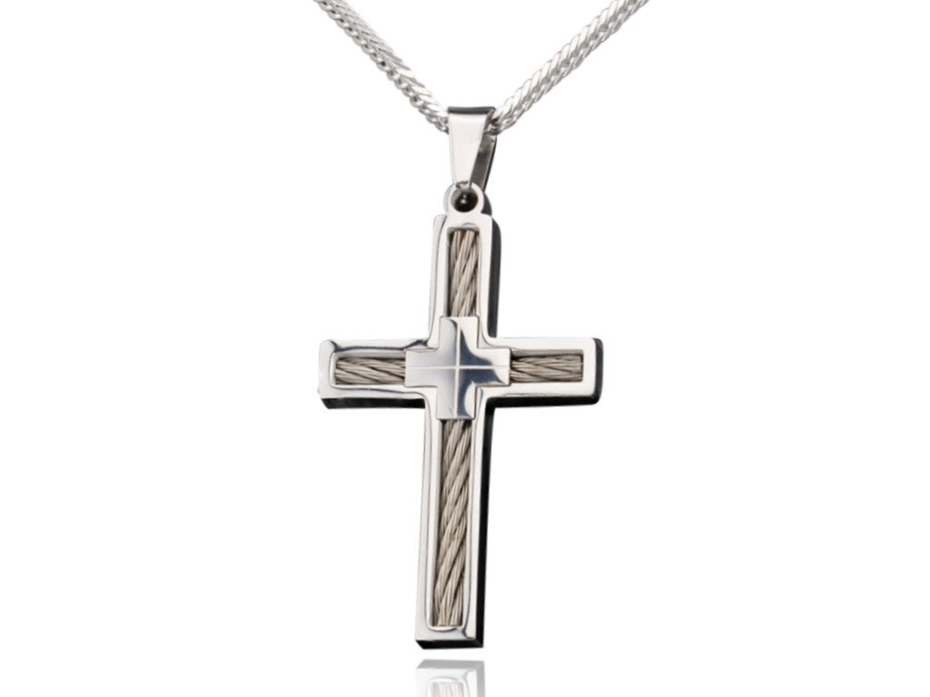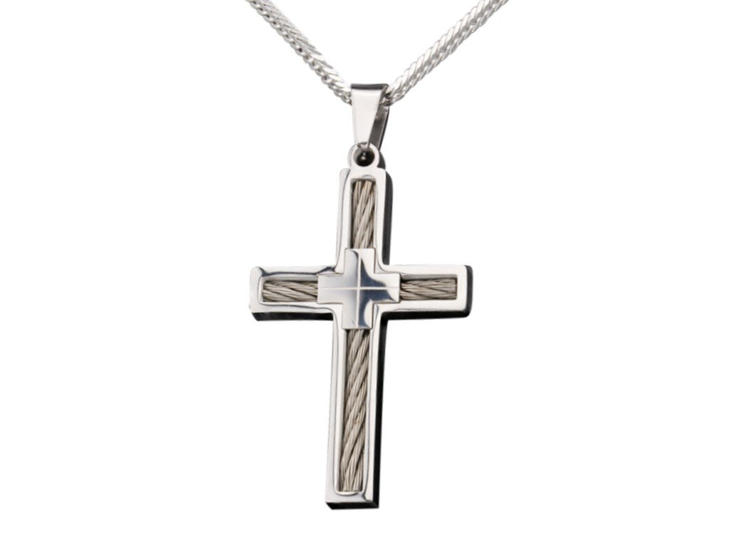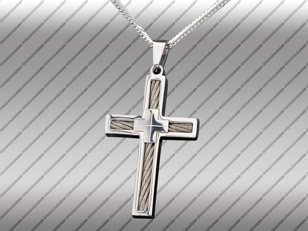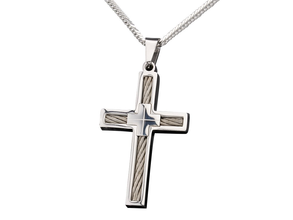 Náhrdelník kříž Steel Rope chirurgická ocel +Dárková krabička zdarma