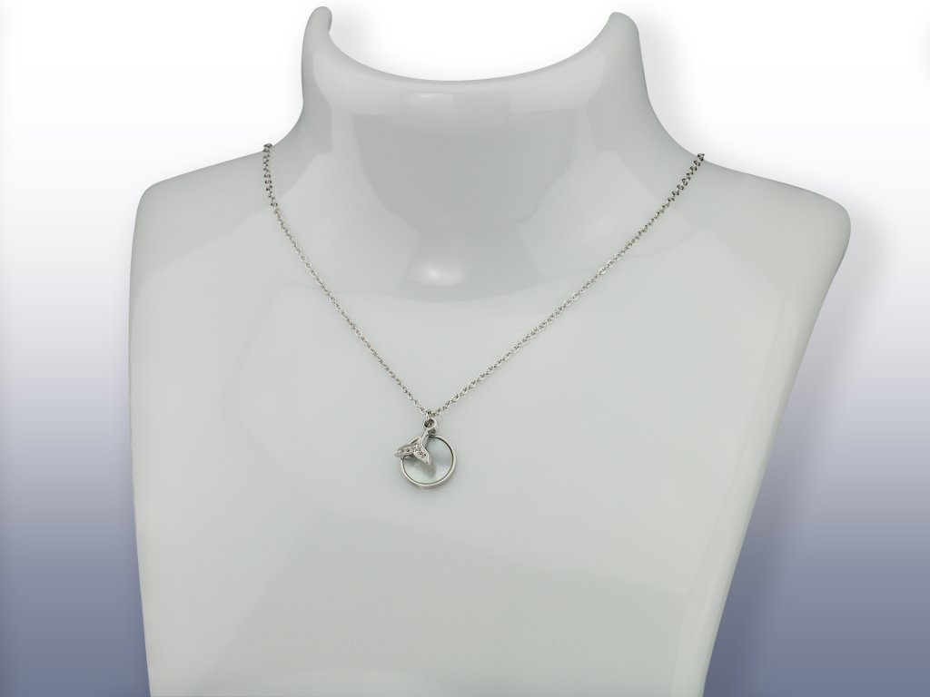 - Nad tímto přívěskem je druhý přívěsek ve tvaru velrybí ploutve vykládaný 6-ti malými zirkony.