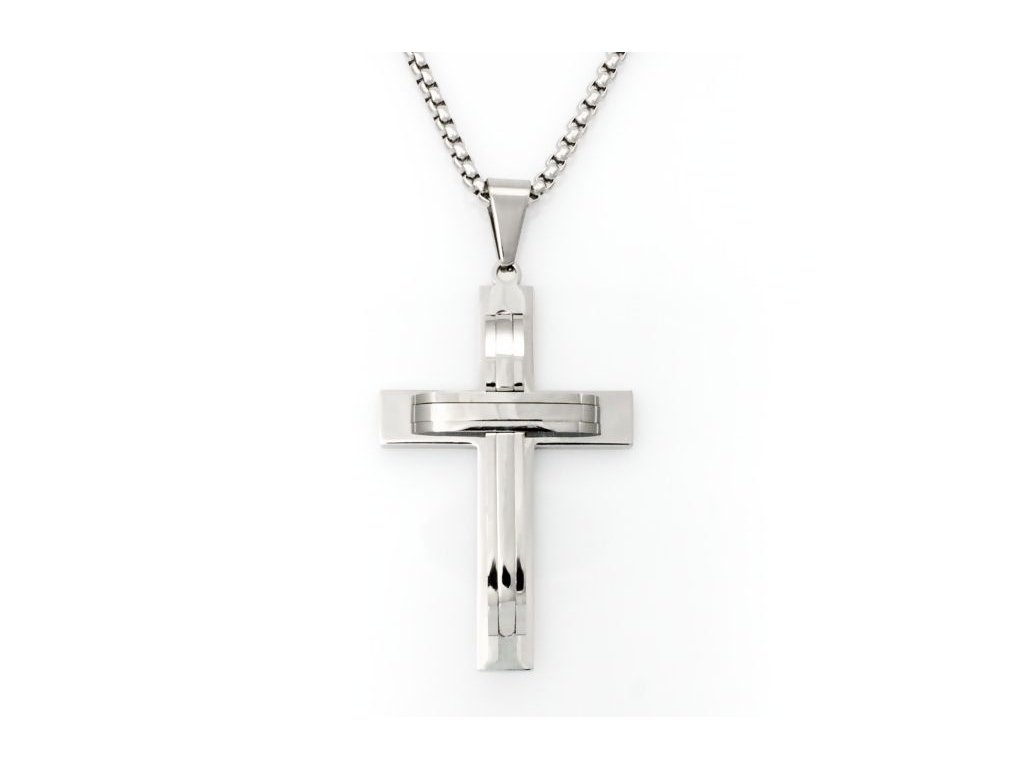 Náhrdelník Kříž Double Cross chirurgická ocel +Dárková krabička zdarma