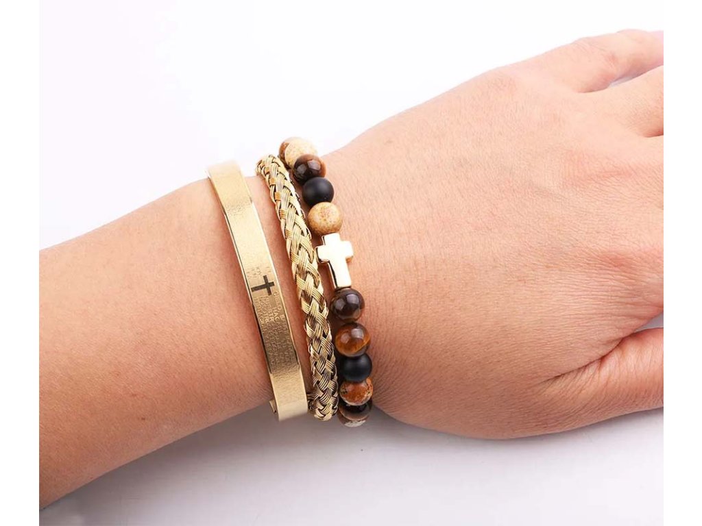 - Pozlacený náramek cuff může být vrstven s dalšími náramky pro vytvoření zajímavých a stylových kombinací, například s dalšími náramky z pozlacené chirurgické oceli nebo s korálkovými náramky s pozlacenými kovovými ozdobami.