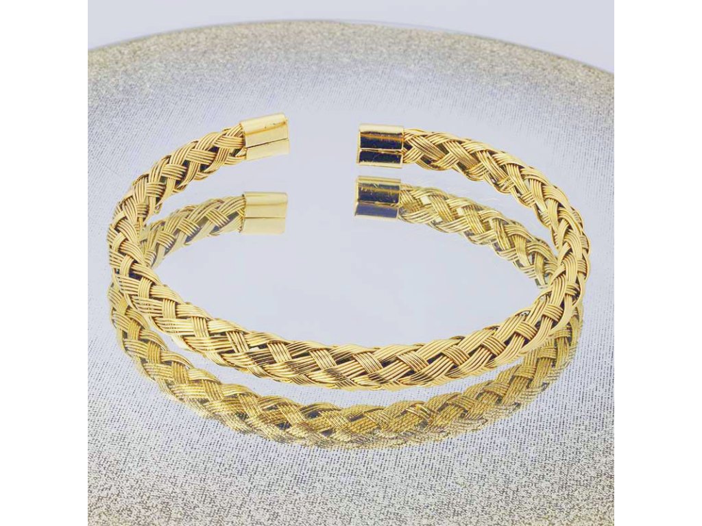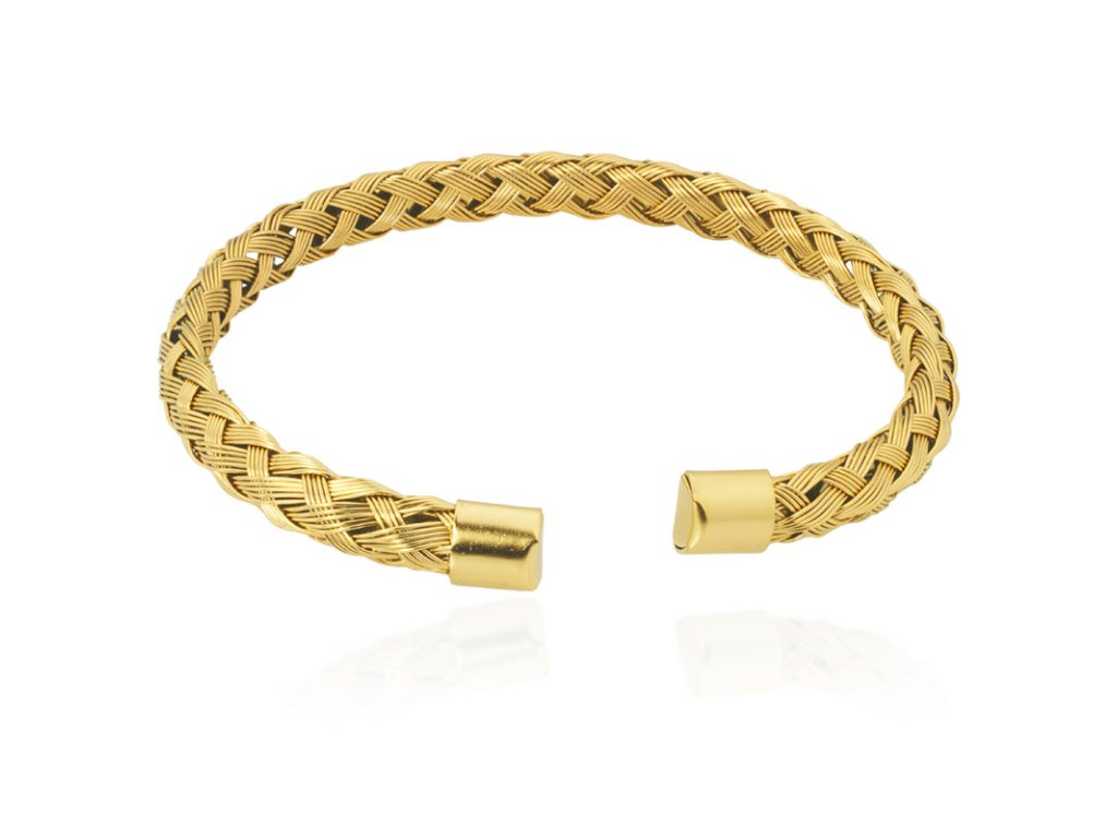 - Je upleten z osmi pramenů. Každý pramen se skládá ze čtyř pozlacených ocelových nitek.