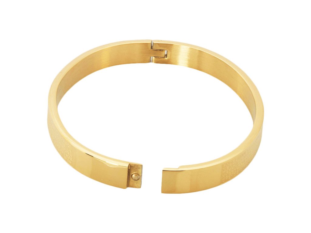- Náramek je vhodný k dalším vrstvení s jinými náramky, například s dalšími náramky z pozlacené chirurgické oceli nebo s korálkovými náramky s pozlacenými kovovými ozdobami.