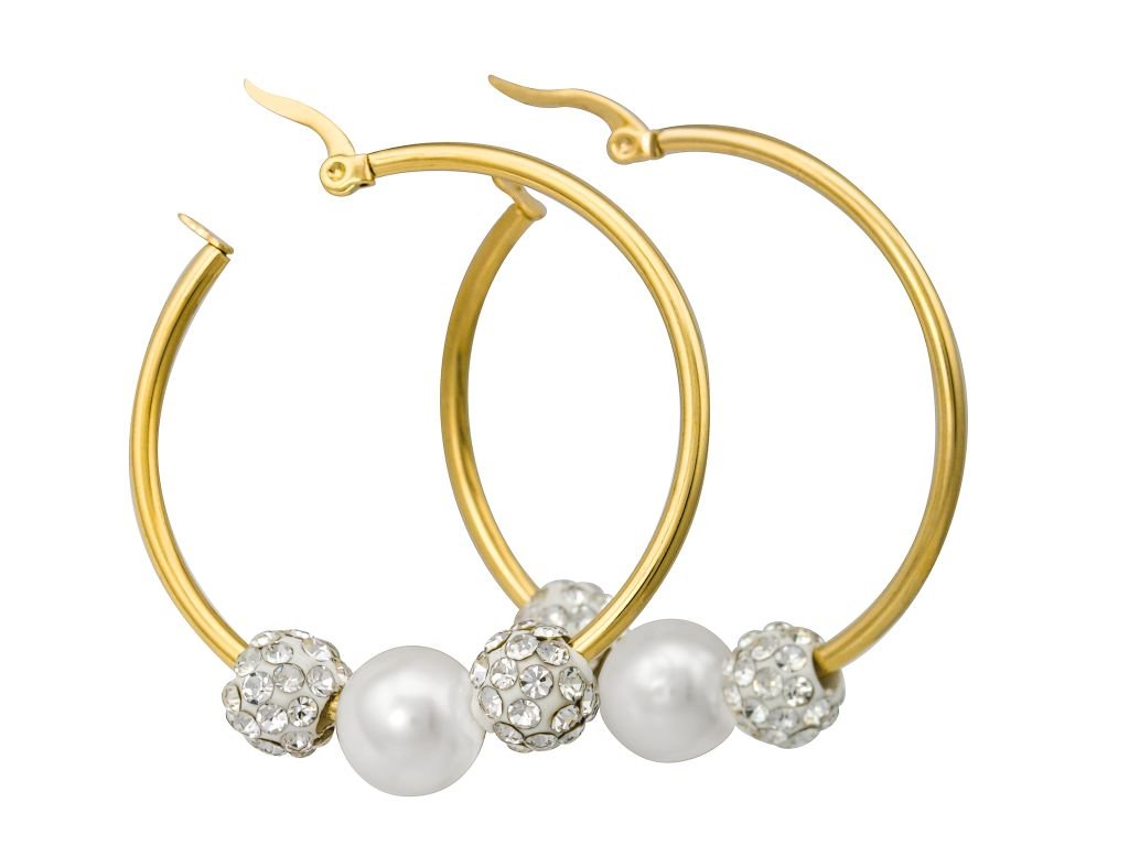 Náušnice Perla Kruhy Třpyt chirurgická ocel +Dárková krabička zdarma