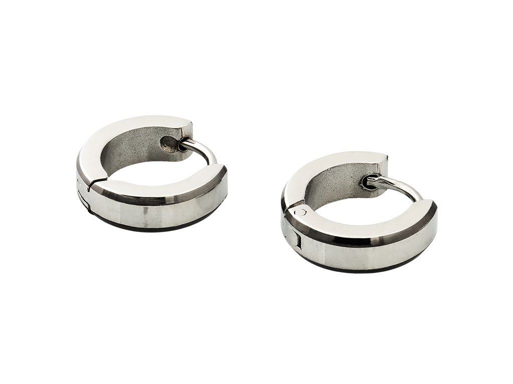 - Náušnice kombinují lesklou metalicky stříbrnou a černou barvu.