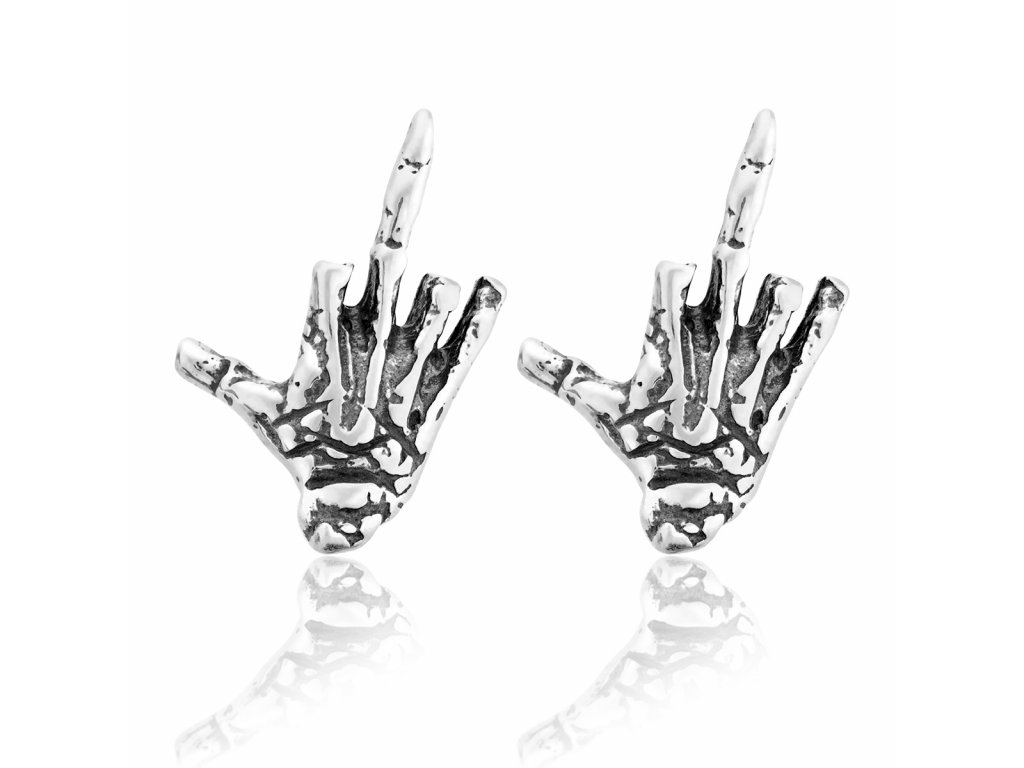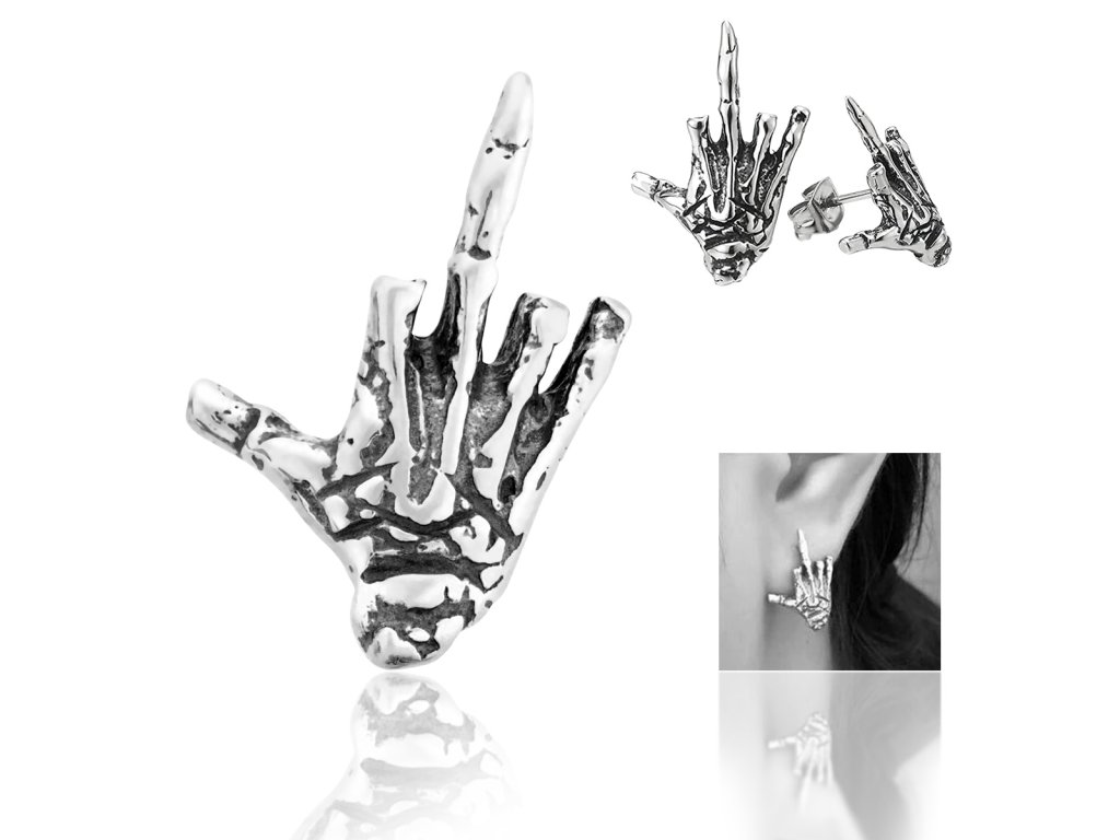 Náušnice Skeleton Hand Middle Finger chirurgická ocel +Dárková krabička zdarma +Silikonová ochranná zarážka zdarma
