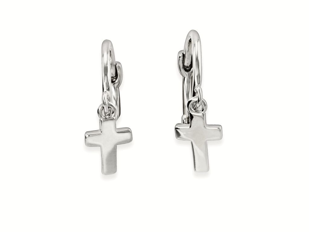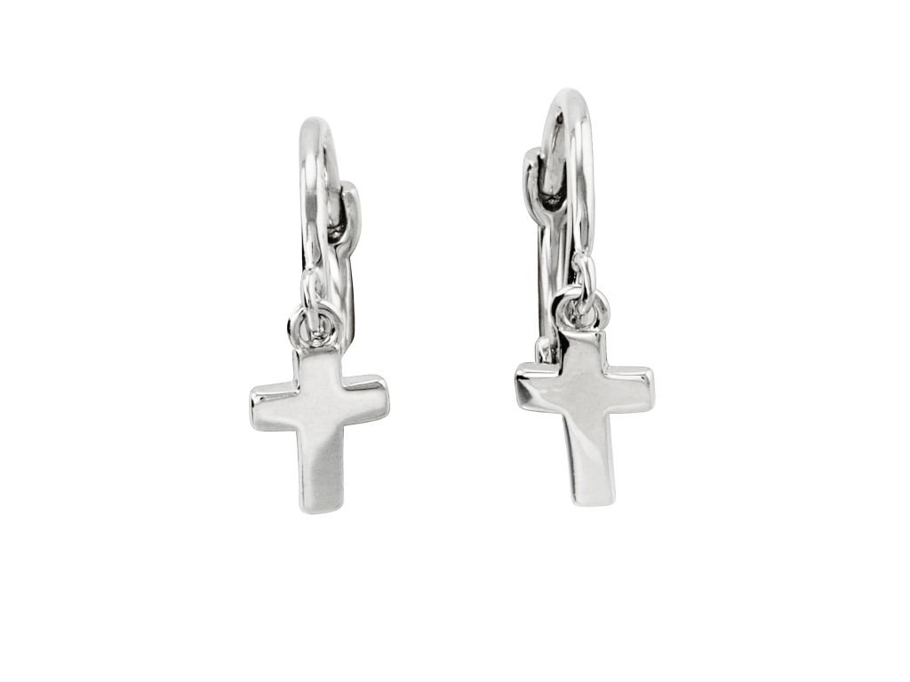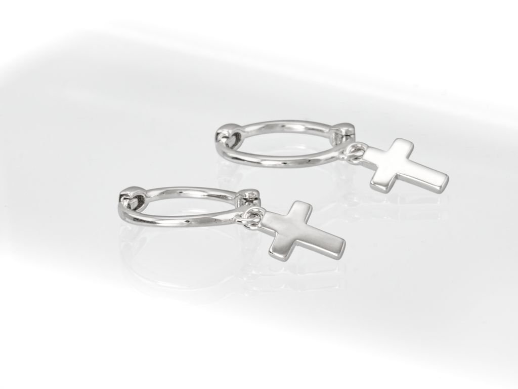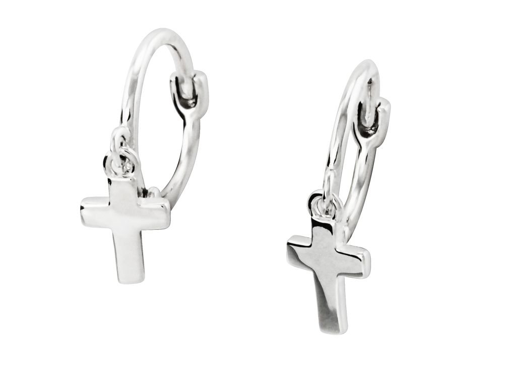 Stříbrné náušnice Kruhy s Křížem Malé Simple Cross Ag 925/1000 +Dárková krabička zdarma