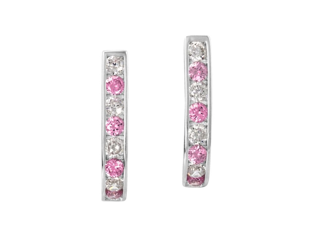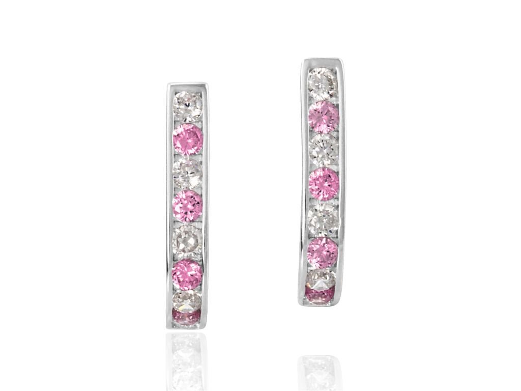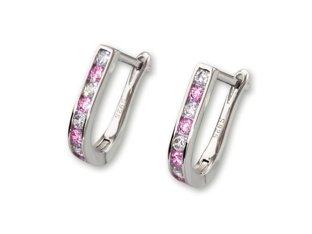 Stříbrné náušnice Kruhy Střední Pink & Silver Zirkon Ag 925/1000 +Dárková krabička zdarma