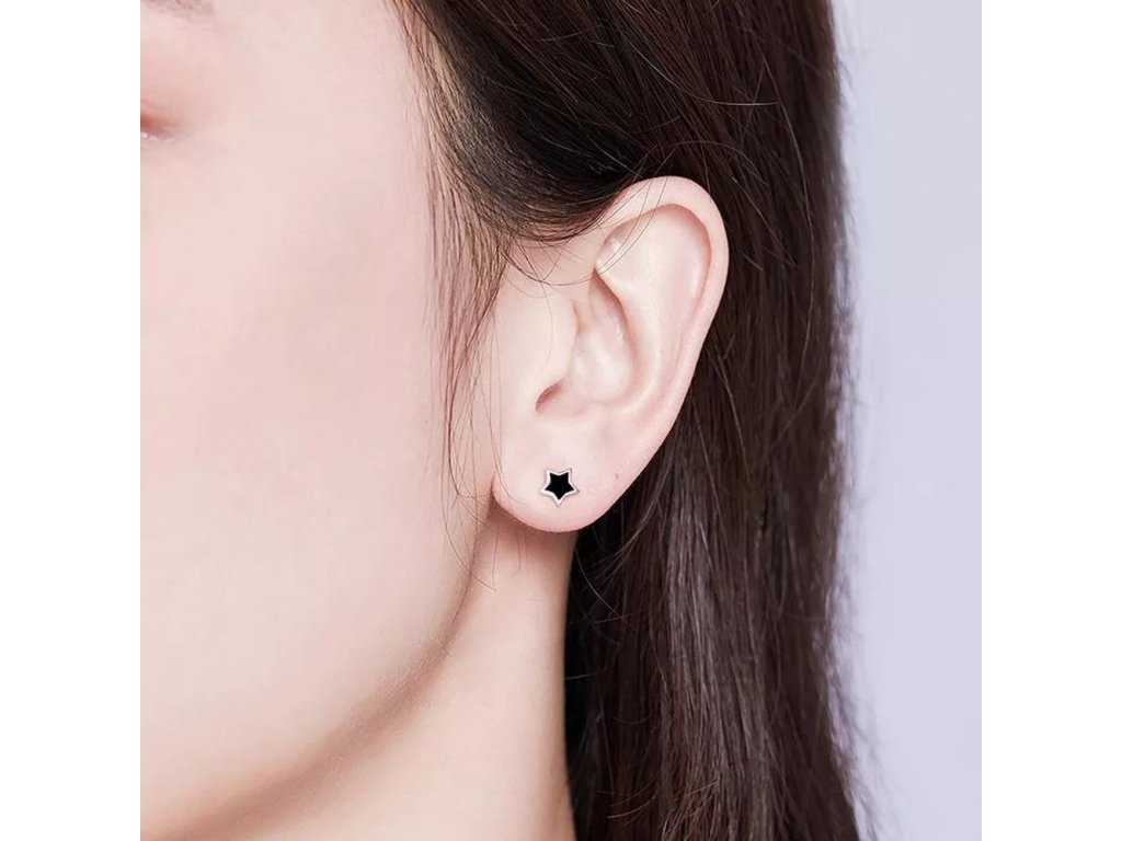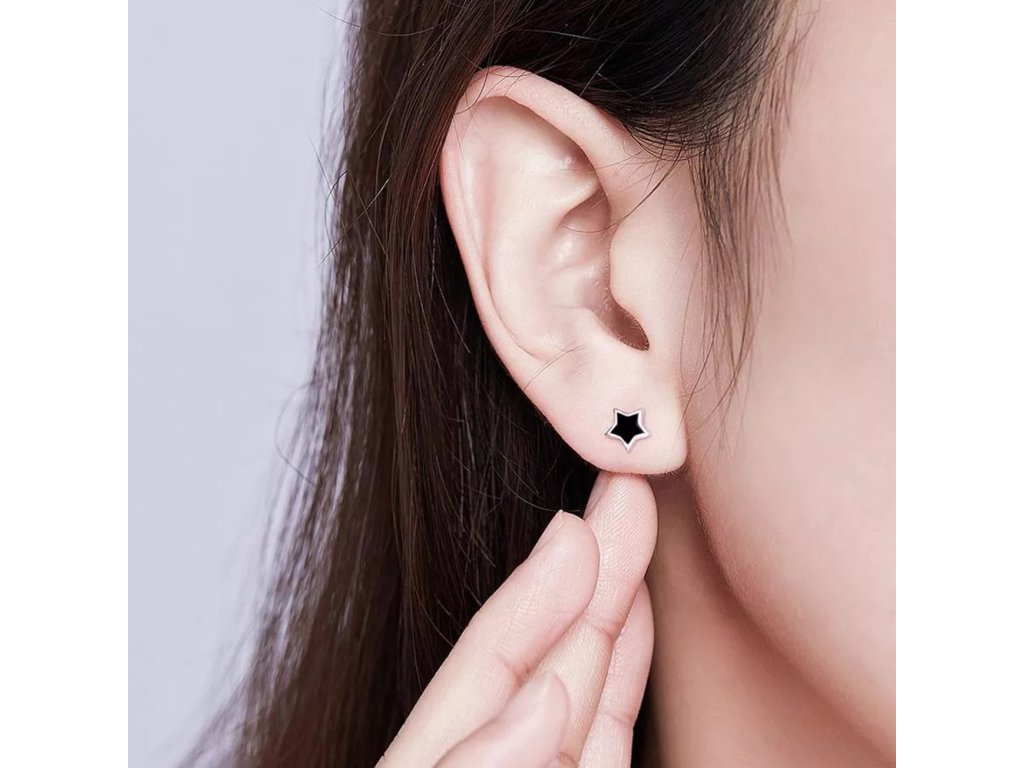 Stříbrné náušnice Black Star Ag 925/1000 +Dárková krabička zdarma +Silikonová ochranná zarážka zdarma