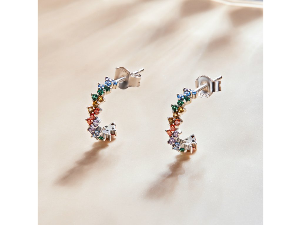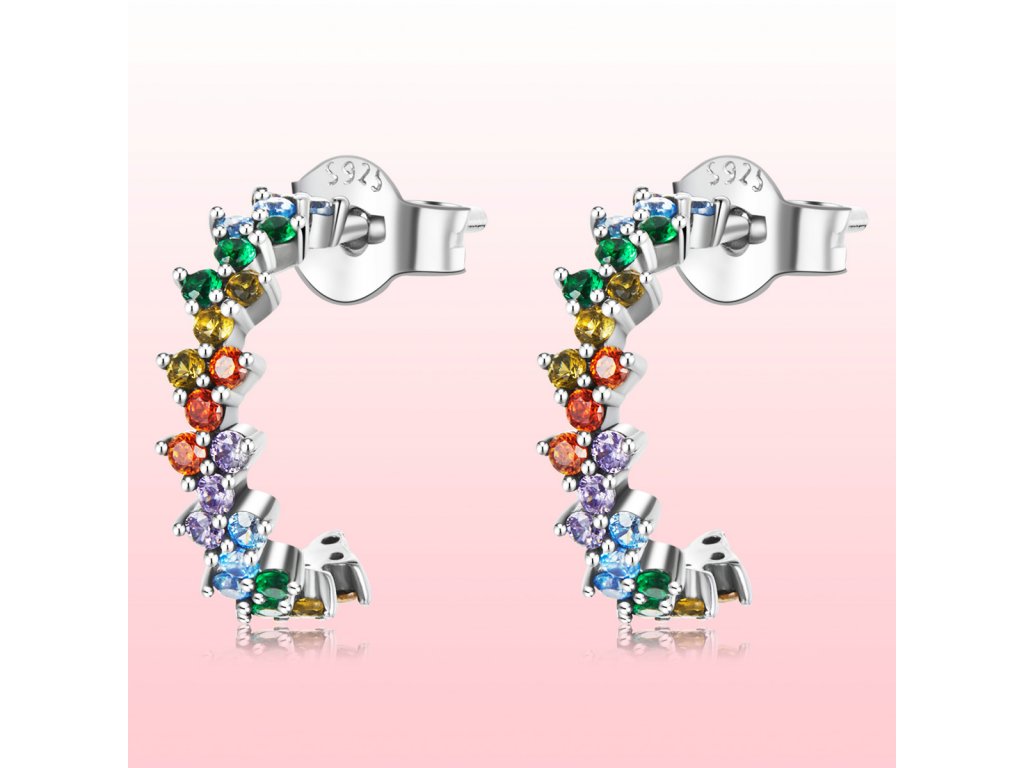 Stříbrné náušnice Duhopád Ag 925/1000 +Dárková krabička zdarma +Silikonová ochranná zarážka zdarma