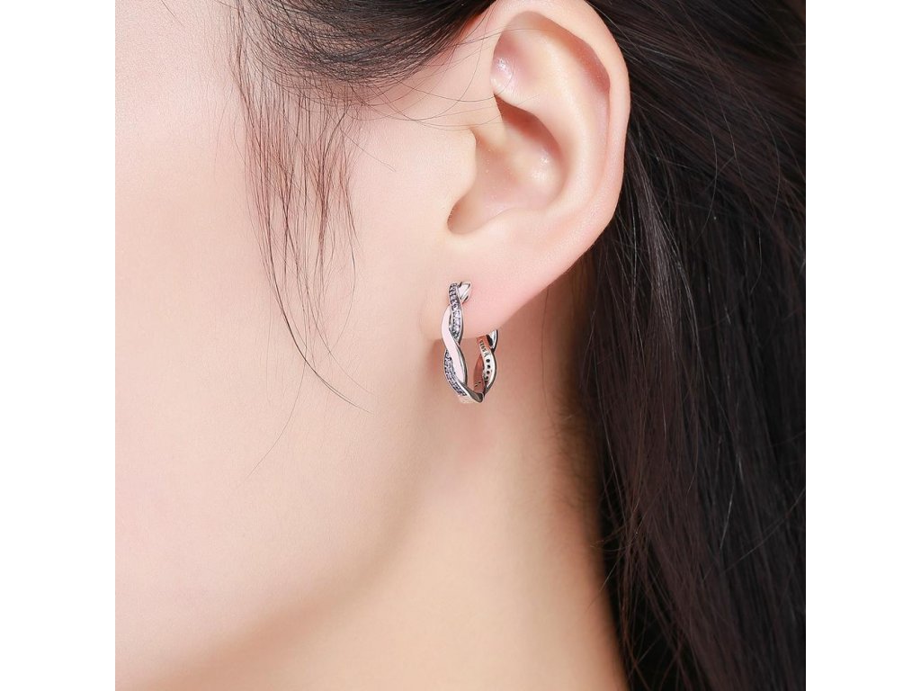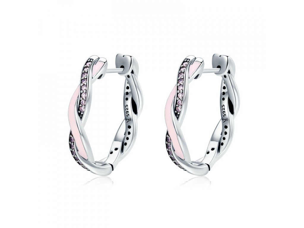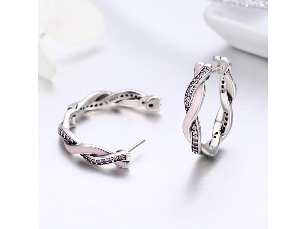 Stříbrné náušnice Kruhy Shiny Propletení Pink Ag 925/1000 +Dárková krabička zdarma