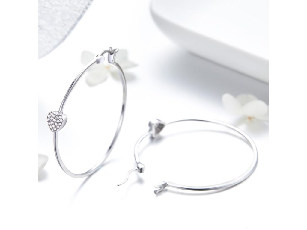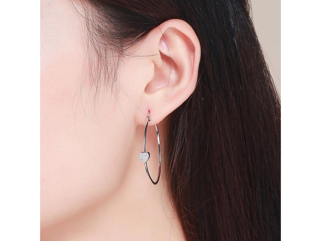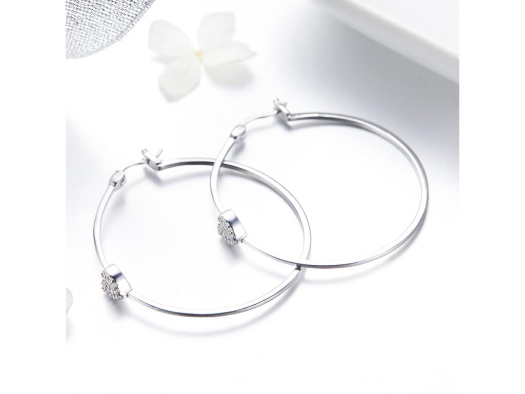 Stříbrné náušnice Kruhy Střední Love Zirkon Ag 925/1000 +Dárková krabička zdarma