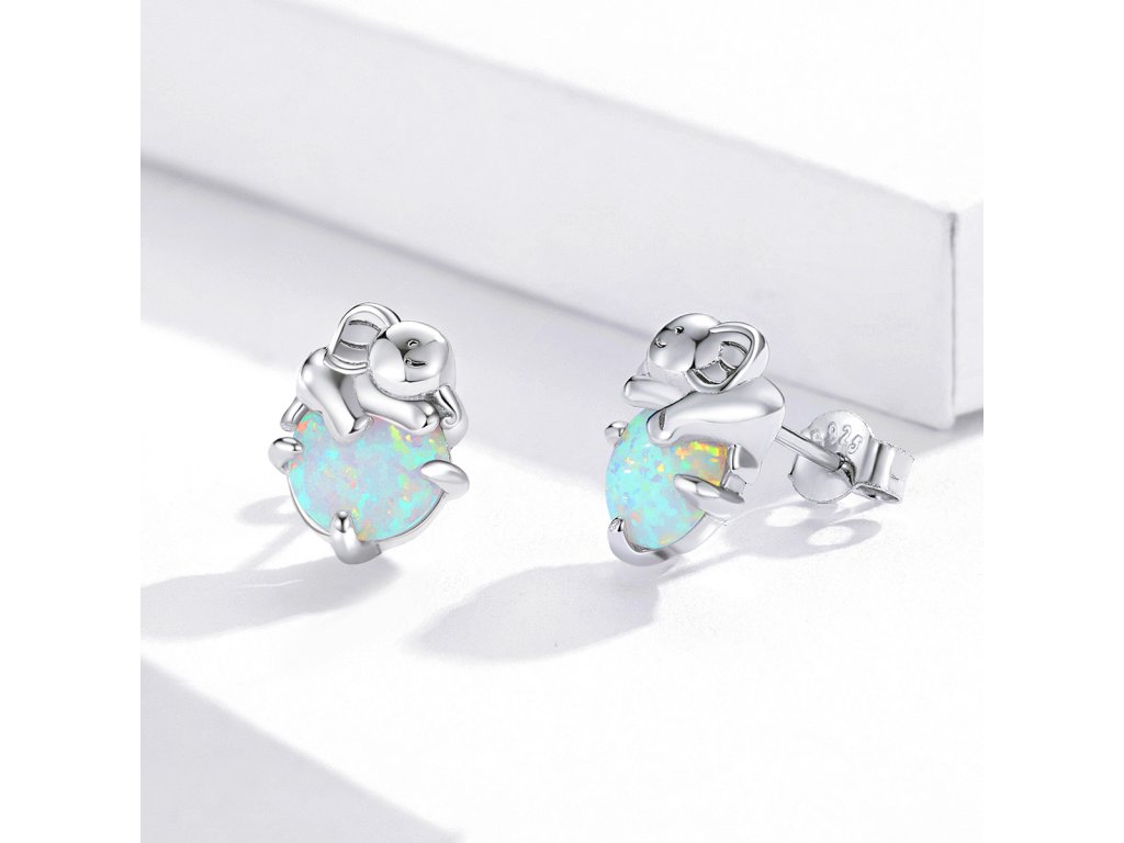 Stříbrné náušnice Opálový Slon Ag 925/1000 +Dárková krabička zdarma +Silikonová ochranná zarážka zdarma