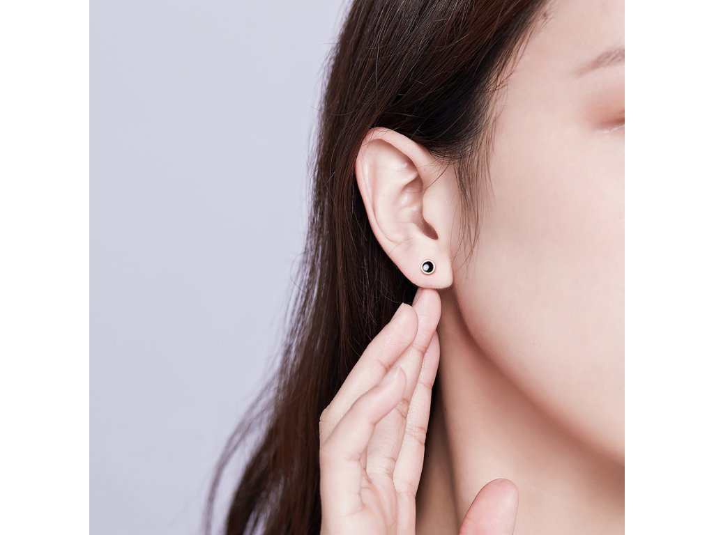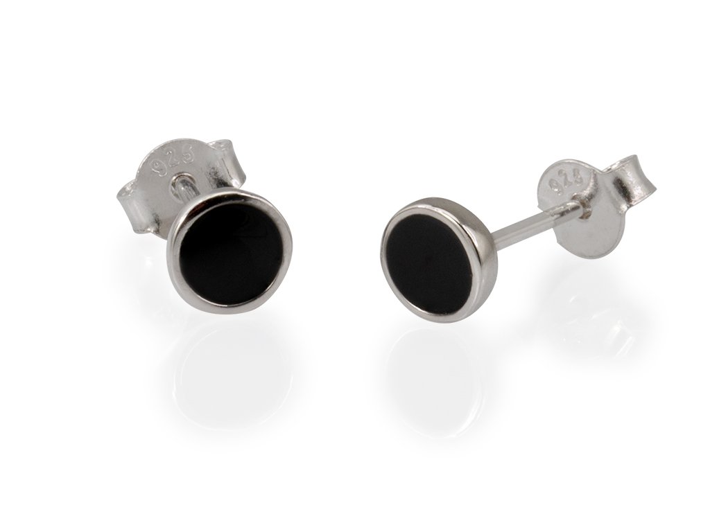 Stříbrné náušnice pecky Simple Black Ag 925/1000 +Dárková krabička zdarma +Silikonová ochranná zarážka zdarma