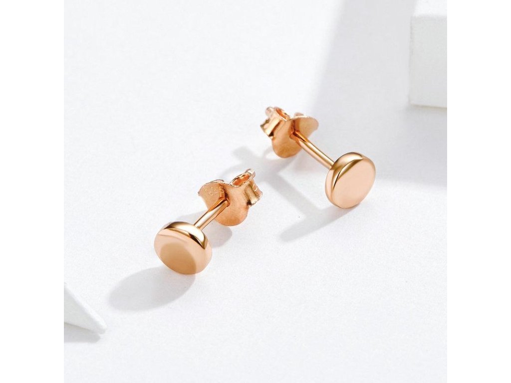 Stříbrné náušnice pecky Simple Flat Rose Ag 925/1000 +Dárková krabička zdarma +Silikonová ochranná zarážka zdarma