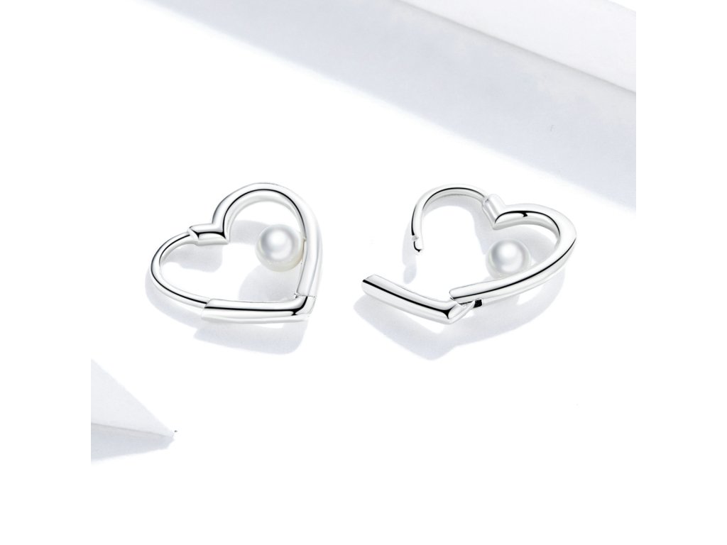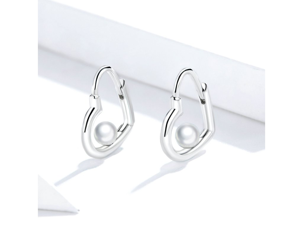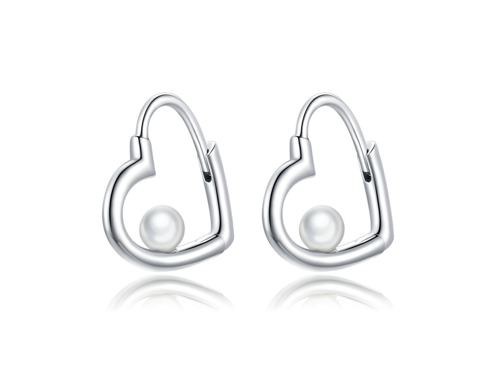 Stříbrné náušnice Perla v Srdci kruhy Ag 925/1000 +Dárková krabička zdarma
