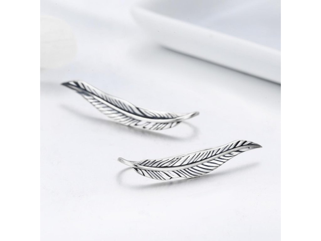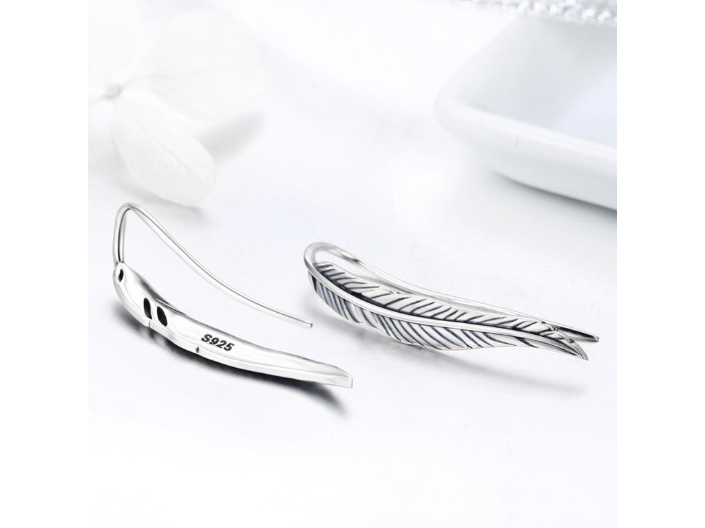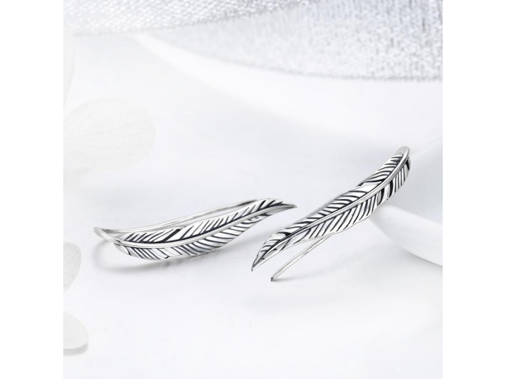 Stříbrné náušnice Pírko Svobody Visací Ag 925/1000 +Dárková krabička zdarma +Silikonová ochranná zarážka zdarma