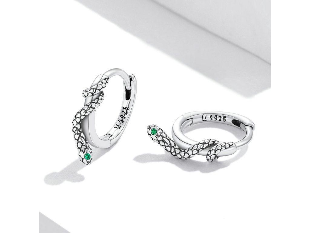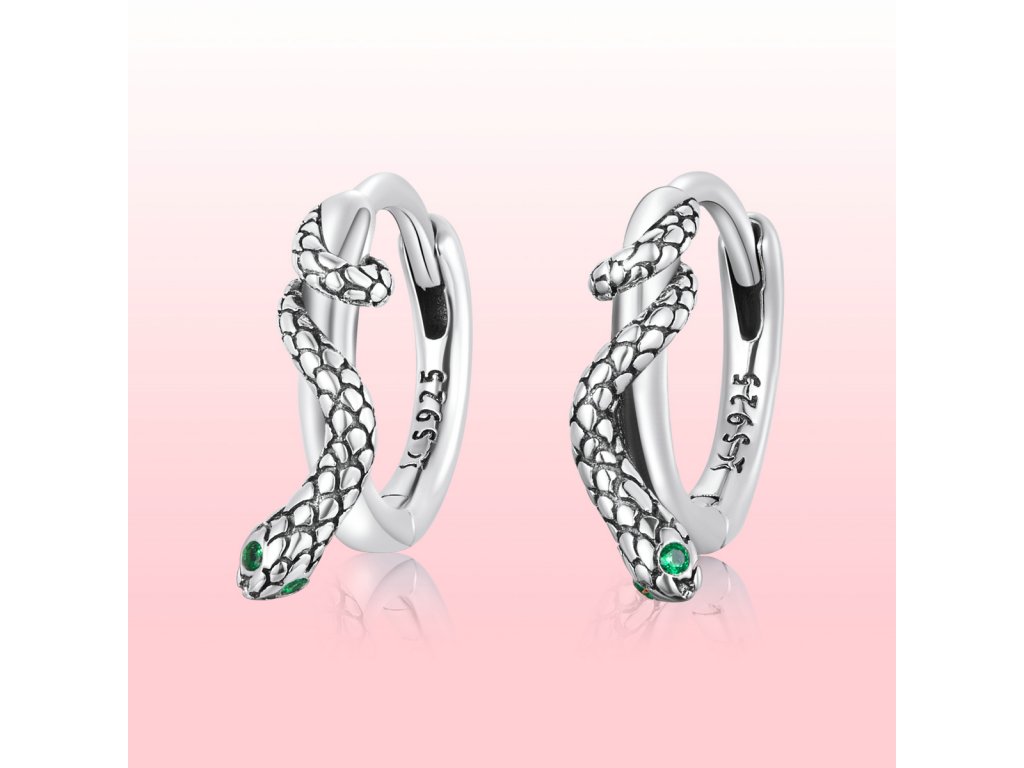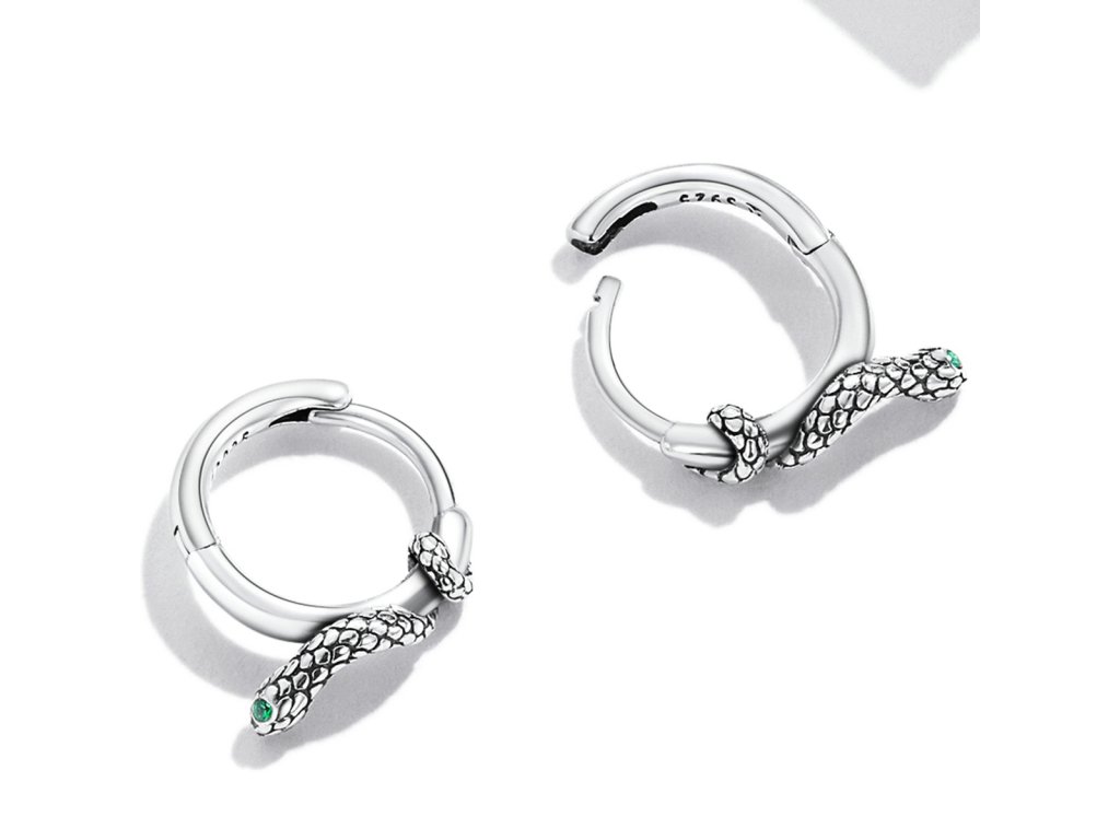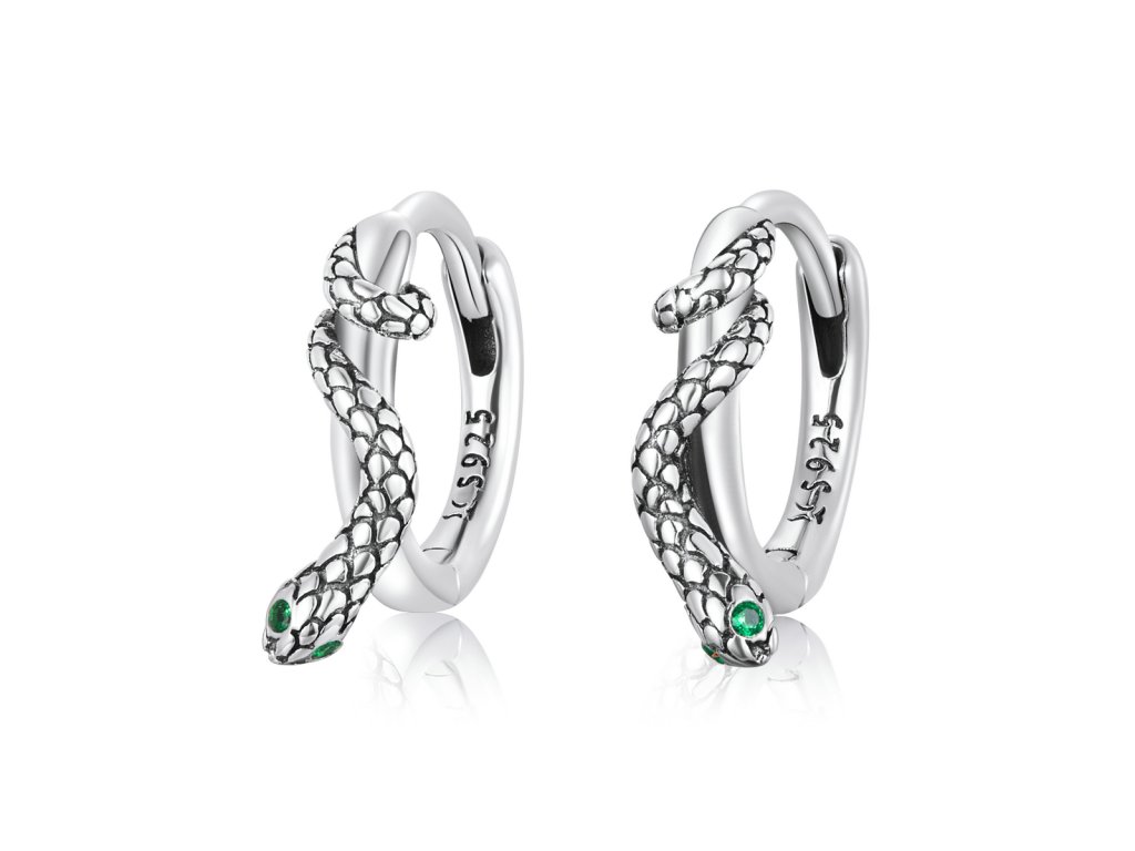 - Stříbrné kruhy s hadím motivem říznuté vintage stylem si zamilujete.