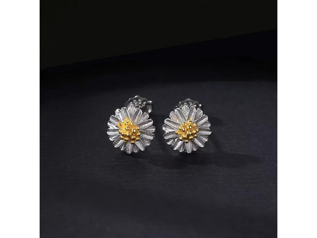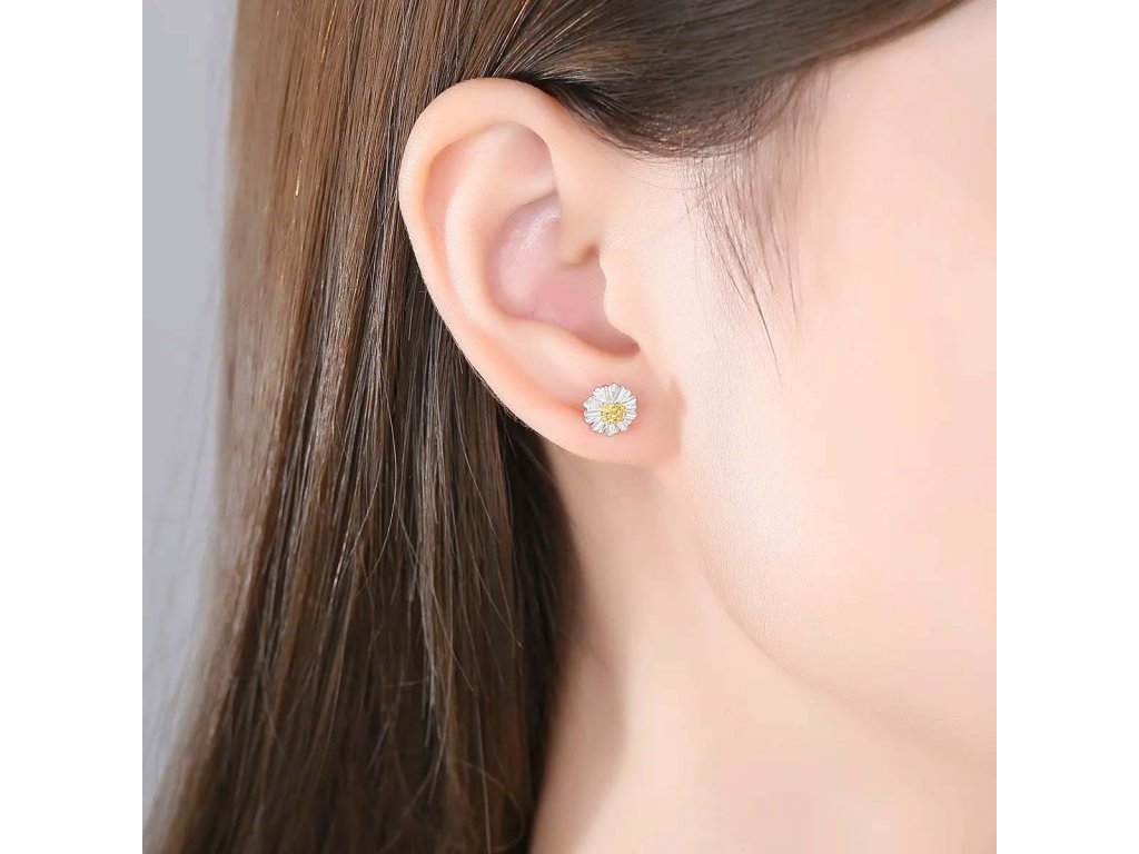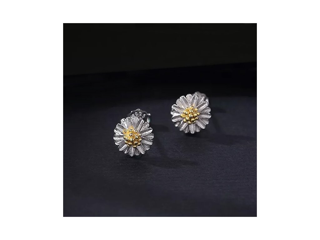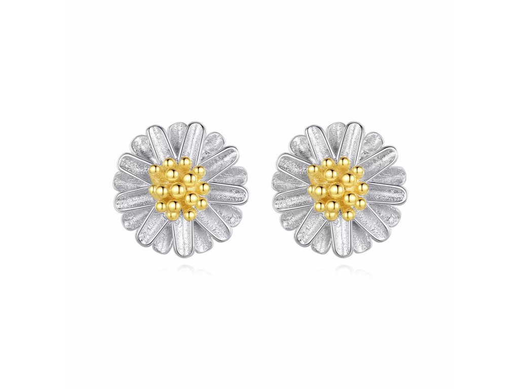 - Stále módní design náušnic s květinovým motivem sedmikrásky.