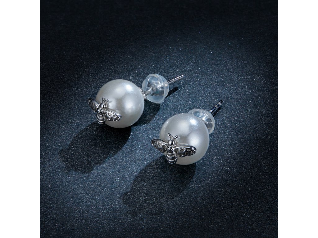 Stříbrné náušnice Včelí Perla Ag 925/1000 +Dárková krabička zdarma +Silikonová ochranná zarážka zdarma
