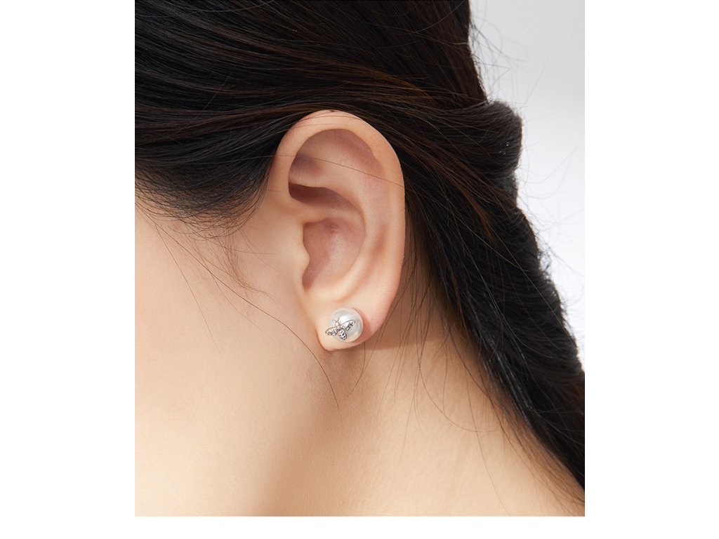 - Náušnice jsou osazeny kvalitní syntetickou perlou a třpytivými zirkony.