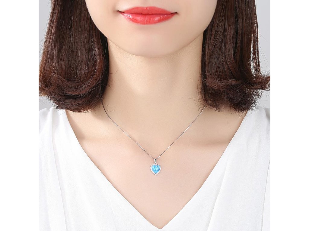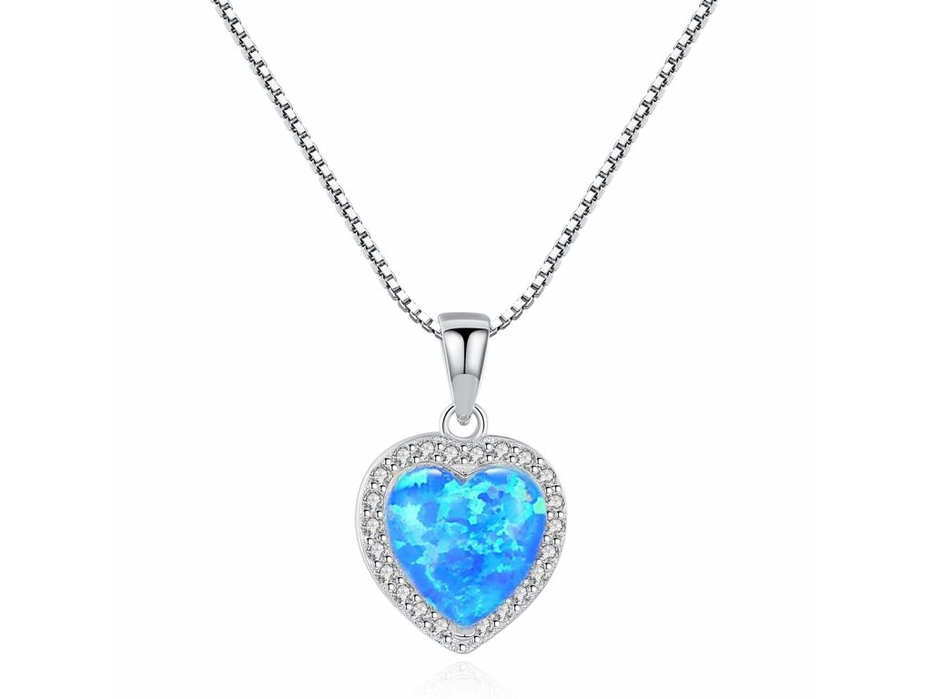Stříbrný náhrdelník Opálové Srdce Ag 925/1000 +Dárková krabička zdarma