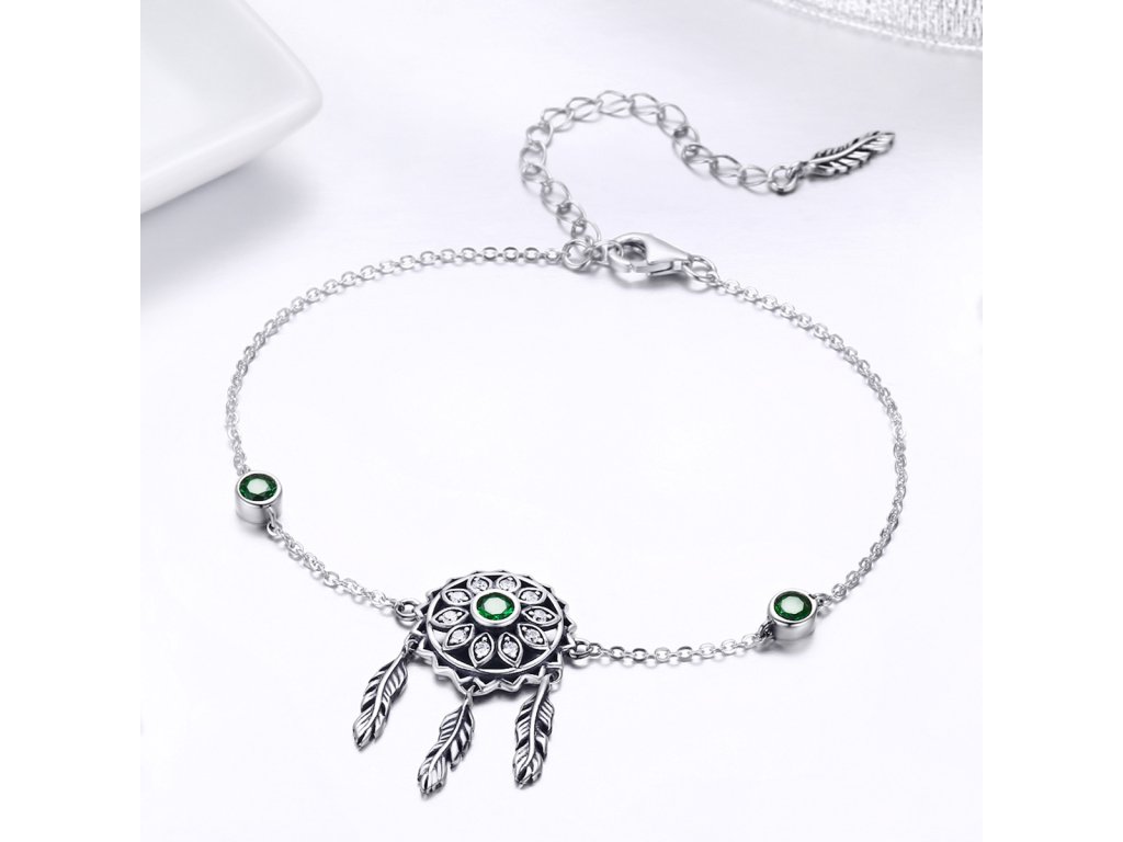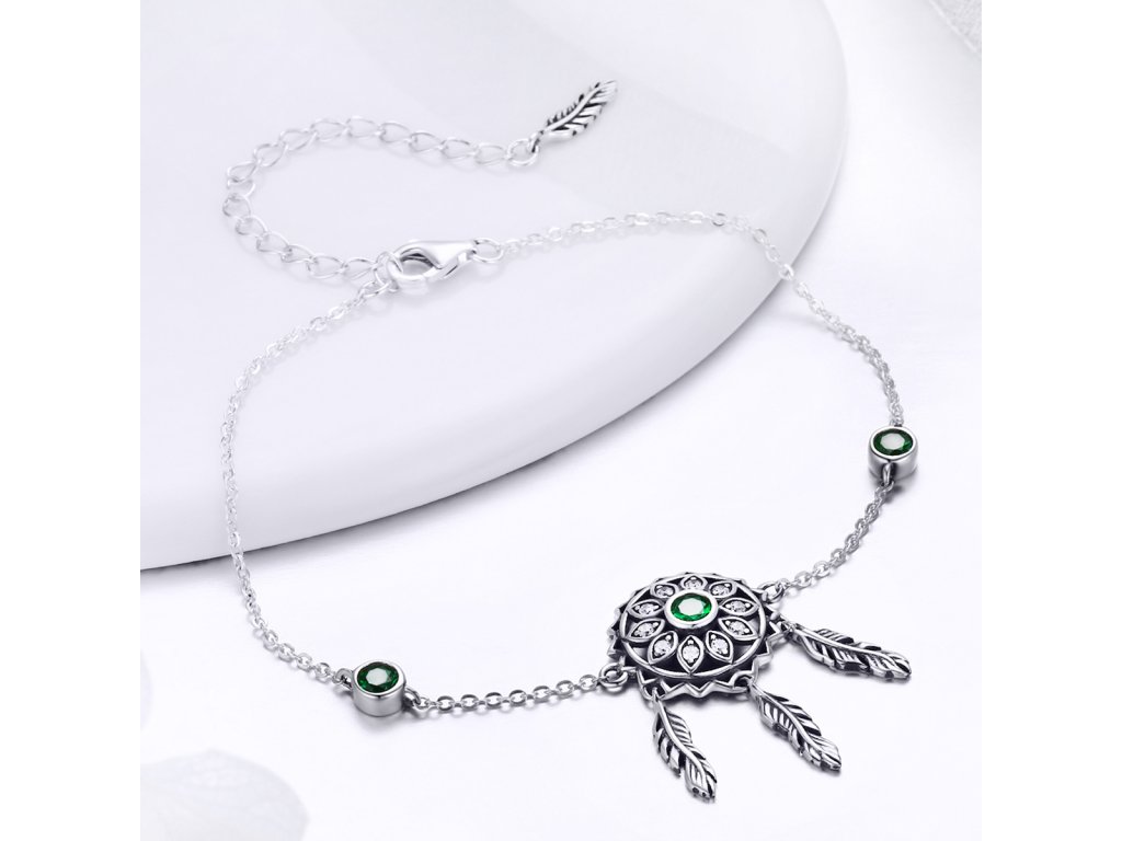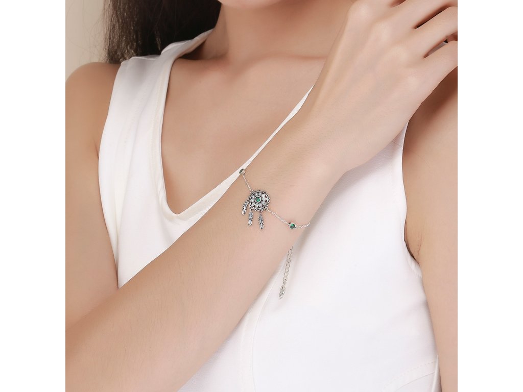 Stříbrný náramek Lapač snů Zelené Slunce Ag 925/1000 +Dárková krabička zdarma